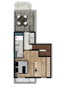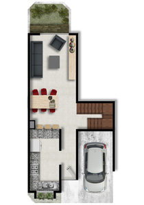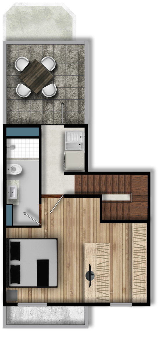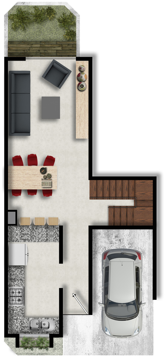 117.2 m2 + 31.8 m2, 3 recámaras, sala, comedor, 3 baños, cocina abierta, Roof Garden, jardín y estacionamiento.